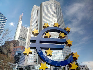 E literalmente em dois passos avançámos da zona mais imunda para o esplendor dos gigantescos prédios que ostentam todo o dinheiro que ali foi e é investido. Aqui nesta foto temos a sede original do Banco Central Europeu e logo ao lado mais arranha-céus que competem entre si para ver qual se destaca mais em grandeza.