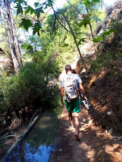 "Encontrei aqui também a S., que veio da Polónia, também sozinha. Hoje fomos os 3, eu, a M. e a S. à descoberta das 7 cascatas na ilha de Rodes. Percebem agora quando digo que quando se viaja sozinho nunca se está completamente só? Acabámos por descobrir um túnel que passa por debaixo da montanha... e claro que tínhamos de passar lá por dentro. São 186 metros de pura escuridão com água que nos corre pelos tornozelos e em certas partes quase pelos joelhos! A meio do túnel não se via nada, só via negro à minha frente. Sabem o que é abrir e fechar os olhos e não haver diferença nenhuma? E absolutamente ninguém se atreveu a usar a lanterna do telemóvel com medo que caísse à água. Foi um bocadinho assustador mas ao mesmo tempo uma experiência brutal. O túnel é tão estreito que só tem espaço para uma pessoa, tivemos que ir em fila. O que se encontra quando se sai é tão lindo! Acho que foi uma bela metáfora para as nossas zonas de conforto e para os medos da vida. E aquela comida? E aquela praia com água a 26 graus ali ao fim? Ai Grécia, Grécia."