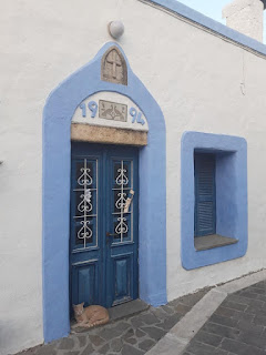 "Conheci a M. na primeira noite em que cheguei ao acampamento aqui na Grécia. Ela está num projecto de voluntariado aqui e desde o primeiro instante que conversámos muito sobre a minha vida de voluntário no passado. E aos poucos descobrimos que tínhamos muitas ideias em comum. A M. tem um carro e hoje convidou-me para ir com ela explorar o sul da ilha, para onde não há qualquer transporte público. Aceitei logo. Queria descobrir o lado mais selvagem de Rodes, as praias desertas, estar longe da confusão turística. Mas o que encontrei foi um tesouro de um valor incalculável. Andávamos à procura de um sítio para almoçar, por estradas tão estreitas, caminhos tão difíceis... até descermos a montanha até uma praia mais escondida. Havia apenas 3 ou 4 casas. E uma delas era um "restaurante". Na verdade era uma casa de família mas preparavam comida e vendiam. Tinham mesas improvisadas e um menu traduzido num inglês rabiscado. Tratavam do negócio dois senhores e uma senhora, todos já passaram dos 70 anos... logo nos explicaram que tudo o que se comia ali vinha da horta deles, mesmo em frente à casa, ao lado do mar. Lamento por não conseguir transcrever em palavras quanto aqueles olhos me tocaram. Aqueles olhos que já viram e viveram muito tinham uma ternura que não tem explicação. Tinham aquilo que falta tantas vezes no mundo. Mesmo com a barreira linguística (e um dos senhores falava um bocadinho de inglês), mesmo com as minhas limitações alimentares, bastou dizer o que comia ou não e foi me logo trazida comida. Sem porquês, sem isto, sem aquilo. E que comida, e que sabores tão fortes, tão naturais. A verdadeira Grécia toda ali naquela mesa. Ficámos ali imenso tempo na conversa, eu e M., como se já o tivéssemos feito centenas de vezes antes. À nossa volta dezenas de gatos, às vezes vinham e pediam-nos comida. E nós comemos e bebemos. E os senhores sempre preocupados... queriam saber se estávamos a gostar. No fim ainda me ofereceram melancia. E quando fui pedir café, entrei na casa deles e pedi para tirar uma foto às imensas memórias que tinham ali expostas. Depois saí e fui ao pé do mar. Emocionei-me, claro, agradeci tanto pela sorte que tenho, pelas pessoas incríveis que se cruzam no meu caminho. Já passei muito na minha vida, já viajei muito, já fiz tanto, mas uma coisa posso dizer-vos... este dia foi um dos momentos mais bonitos que já vivi. Antes de vir para aqui, brincava, dizia que vinha e já não voltava. Mal sabia. Mas é verdade. O Filipe que aqui chegou não é o mesmo que vai sair daqui. Viajar é muita coisa, é também os lugares comuns e turísticos, mas o tipo de viagem que te transforma... que te leva ao coração profundo das pessoas, dos lugares e das culturas é isto."