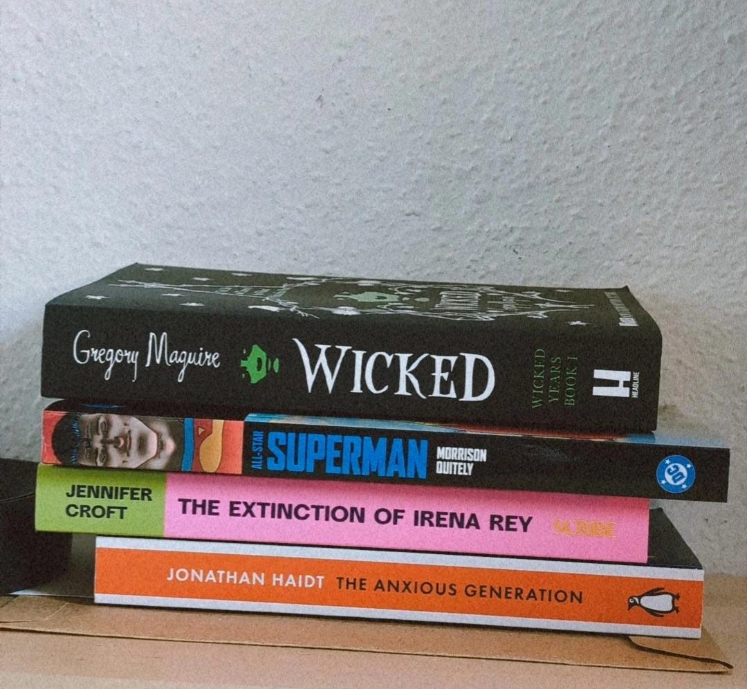O Wicked foi um presente de aniversário. Os outros 3 comprei. O do Superman é um clássico e uma preparação para o filme do James Gunn.